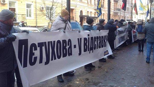 «"Свобода" требует отставки Петухова из-за его инициативы по расселению мигрантов в Украине», — говорится в записи. На опубликованных фото пикетчики держат транспаранты. Координируют акцию лидеры партии Андрей Ильенко и Игорь Мирошниченко.