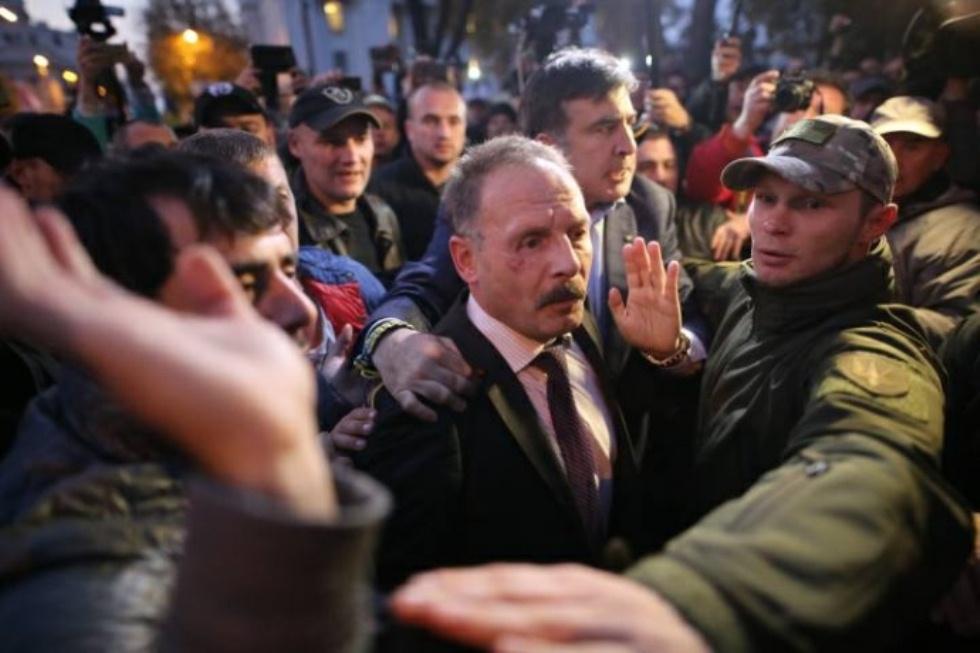 После вмешательство Саакашвили участники митинга сделали Барне "коридор позора".