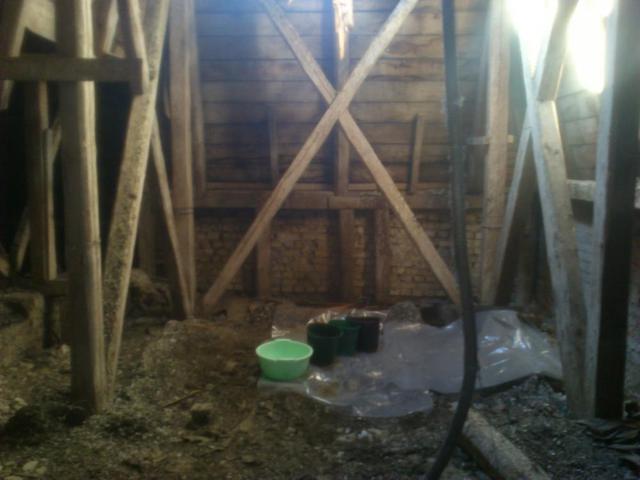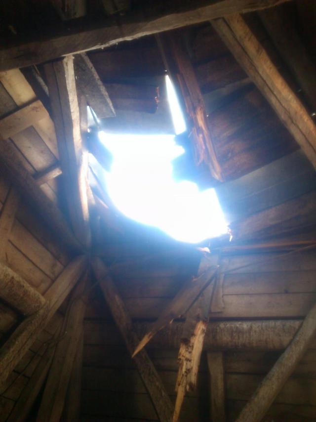 Приглашает пройтись на крышу. Глыба пробила дыру размером 2 на 2 метра. Чердак работники застелили полиэтиленом, воду стекающую в дыру собирают в тазики и ведра. Возле места пробития видны несколько переломанных деревянных балок. Бетонное перекрытие потрескалось, стало мягким. Это здание построено в 1889 году по проекту архитектора Горденина. Отреставрировано в 1980-х годах. Музей Леси Украинки занимает два этажа: на первом расположена мемориальная квартира семьи, интерьер которой был воссоздан по воспоминаниям младшей сестры писательницы Изидоры. Квартира имеет 5 комнат - писательницы, ее матери, столовая, гостиная и комната брата Леси Украинки - Николая Косача. Здесь представлены её личные вещи, есть картина написанная самой Лесей. На втором этаже-экспозиции. Теперь это все под угрозой. Сейчас на улице солнечно и начинает активно таять снег на крыше. Если в ближайшее время не закрыть дыру, то вода зальет здание и станет аварийным. К сожалению, средств у музея на это нет ", - добавляет Ирина Щукина.