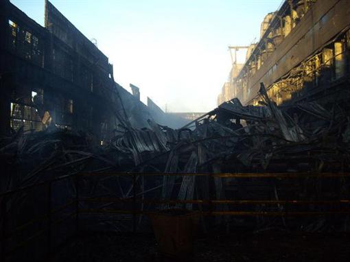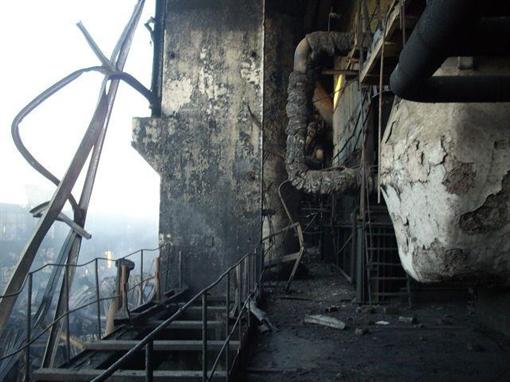 Часть помещений Углегорской ТЭС превратились в пепелище. Сама электростанция после аварии полностью остановлена. Металлоконструкции второго энергоблока обрушились.