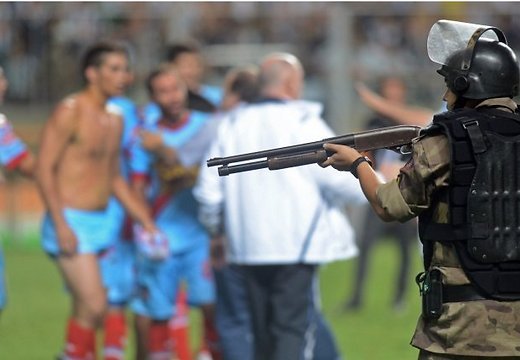 Некоторые офицеры также были с ружьями с резиновыми пулями, хотя была команда не стрелять в игроков.