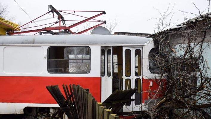 Во временно оккупированном Донецке трамвай врезался в частный дом
