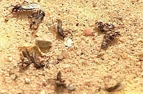 Если неделей ранее крылатые в изобилии парили в воздухе, то теперь их видно только на земле - те, кого еще не постигла гибель, с трудом ползают, словно отравленные химикатами.