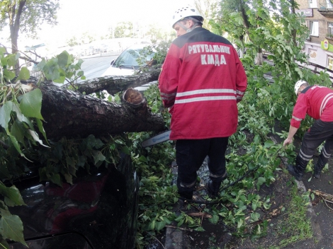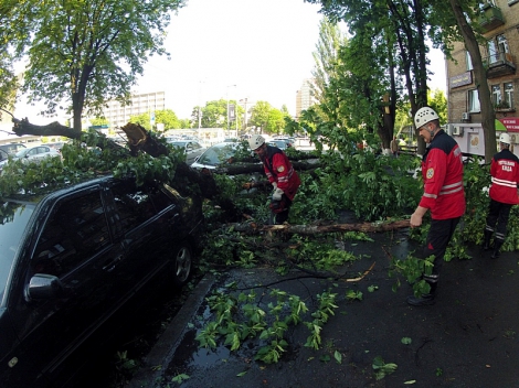 Так, в Шевченковском районе столицы по ул. Аллы Тарасовой, 4, из-за сильных шквалов ветра дерево упало на припаркованный на обочине автомобиль Mercedes-Benz. Спасатели помогли владельцу автомобиля и убрали дерево при помощи электропилы.