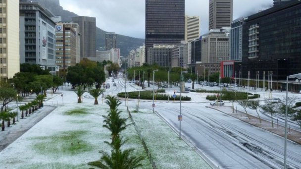 В ЮАР и зимой температура редко опускается ниже +10 градусов, но в начале июня страну засыпало градом и снегом.