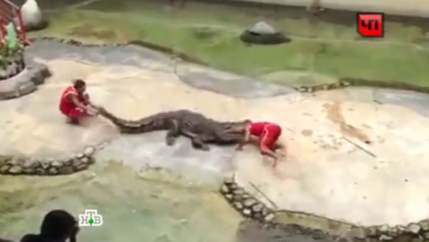 Крокодил едва не откусил голову тайского дрессировщика (ВИДЕО)