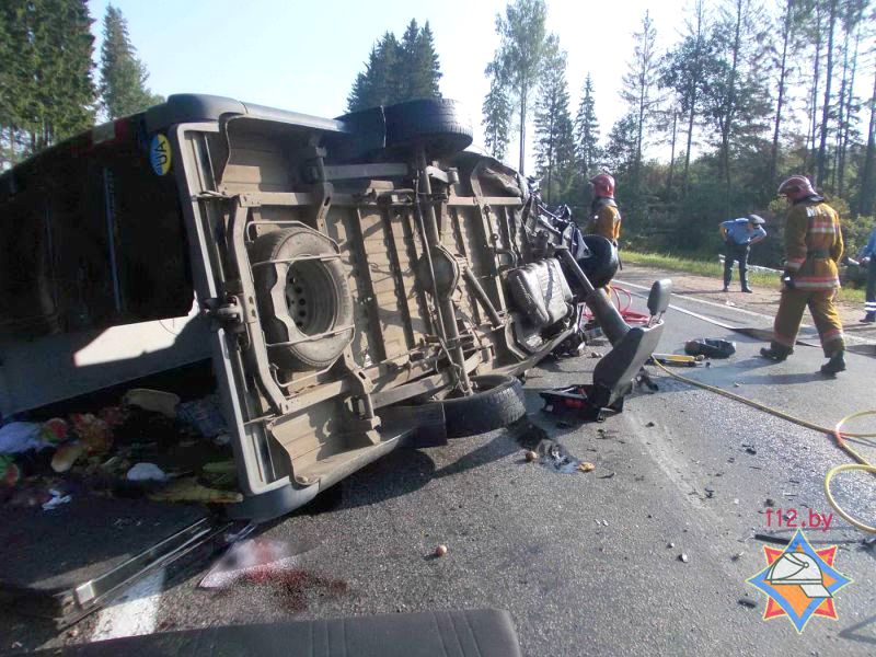 "На ровном участке дороги, хорошо просматривающемся в обоих направлениях, произошло лобовое столкновение автомобиля Opel Omega-караван с российскими регистрационными знаками с пассажирским микроавтобусом Mercedes Sprinter с украинским государственным номером, который двигался во встречном направлении", - отмечено в сообщении МЧС Беларуси.