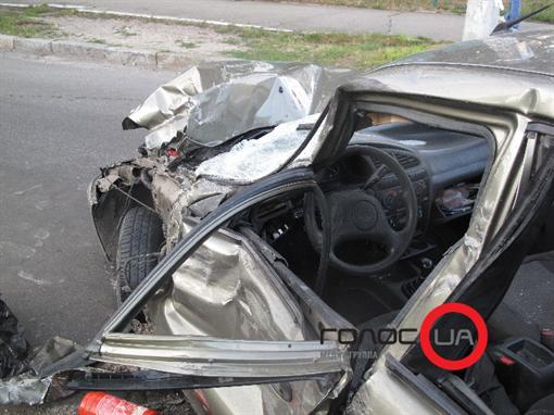Сильно искореженный Ланос оказался на повороте возле памятника Вернадскому.