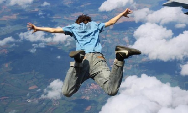 Человек вышел из летящего самолета