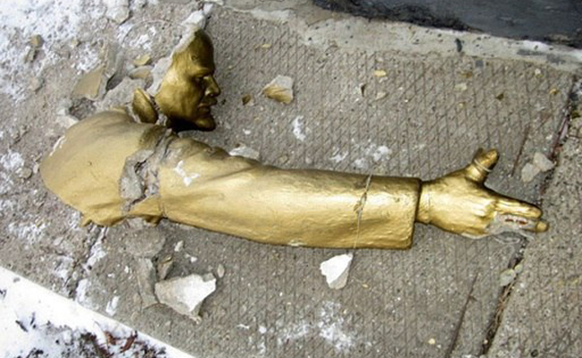 Местная милиция установила, что никто не пытался свалить памятник - монумент сам упал на землю и раскололся на части. "Падение" Ленина произошло из-за частичного разрушения постамента.