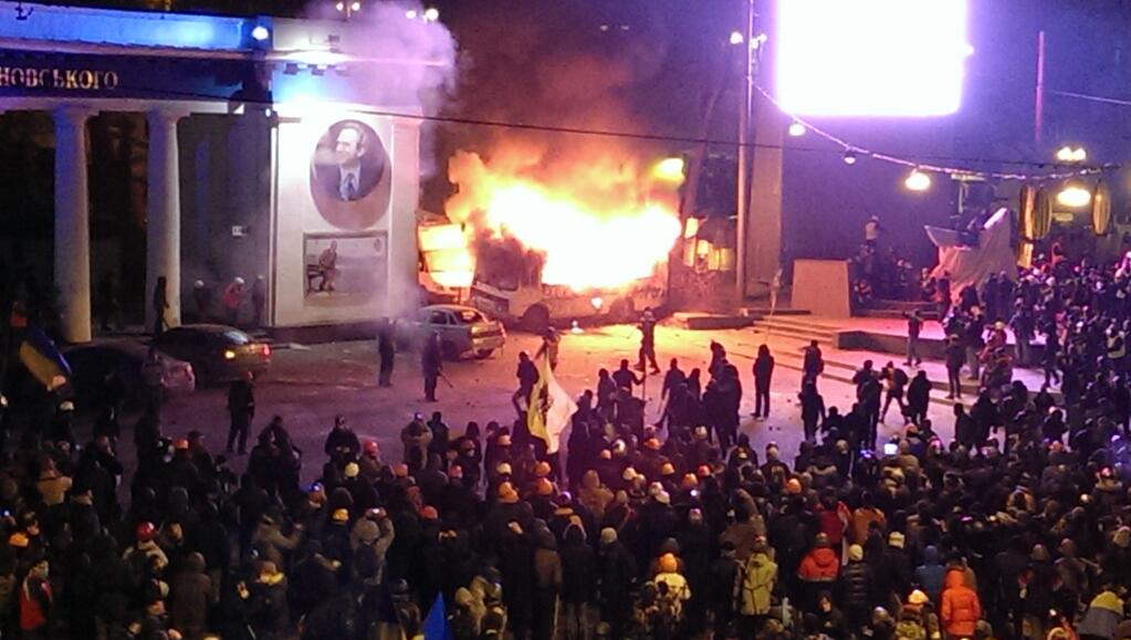 Вчерашние массовые столкновения в Киеве между демонстрантами и милицией на улице Грушевского не прошли бесследно для колоннады стадиона «Динамо» имени Валерия Лобановского, которая оказалась в самом эпицентре восстания.