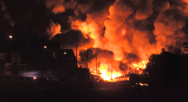 Как сообщает пресс-служба Госслужбы по ЧС, 4 цистерны с пропан-бутаном сошли с рельсов и загорелись в воскресенье утром на железнодорожном перегоне «Удачное-Межевая» (2 км от с. Ленино) Красноармейского района Донецкой области, во время следования грузового поезда с 65 цистернами.