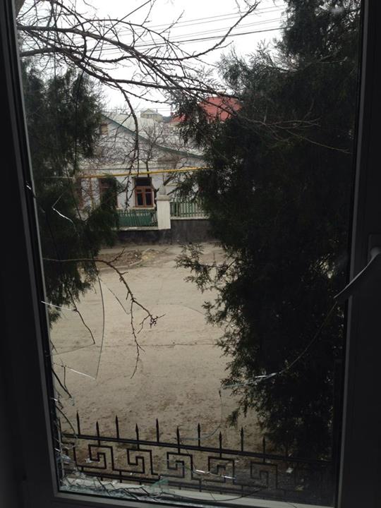 Ночью неизвестные бросили в окно одного из помещений ТРК «Черноморская» бутылку, вероятно, с зажигательной смесью.