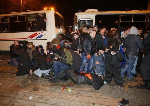 Донецкая областная государственная администрация подтверждает гибель одного человека в столкновениях во время митинга в центре Донецка вечером 13 марта.