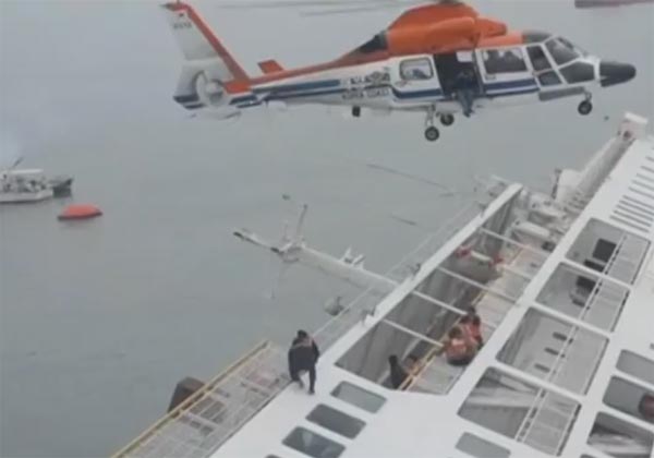 Прибрежная охрана Южной Кореи опубликовала видео с операцией спасения пассажиров парома, потерпевшего крушение у берегов Корейского полуострова в среду.
