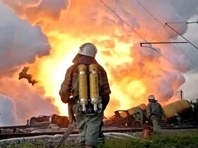 В настоящий момент все здание нефтепредприятия охвачено огнем. С сильным пожаром борются многочисленные спасатели.