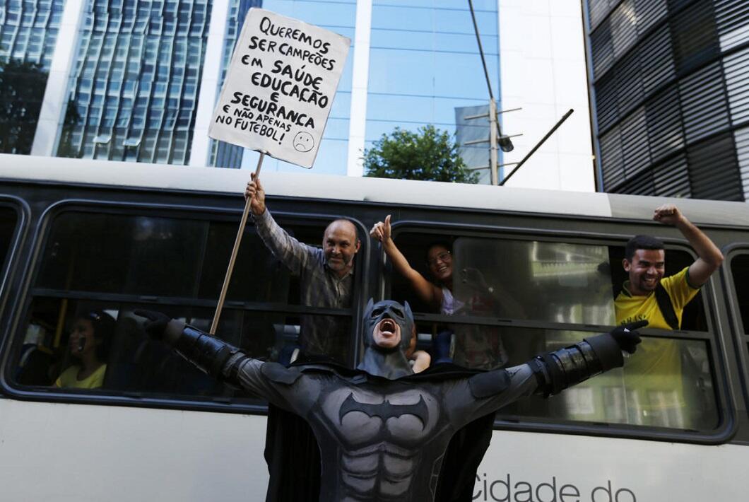10. Антиправительственный демонстрант, одетый как Бэтмен, участвует в протестах в Рио-де-Жанейро, 12 июня 2014. (© REUTERS)