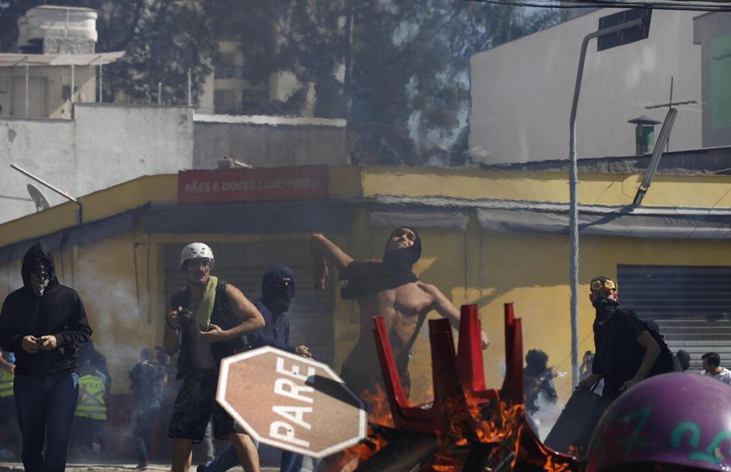 8. Протестующие пытаются остановить полицию, поджигая мусор во время столкновений в Сан-Паулу, 12 июня 2014. (© REUTERS)