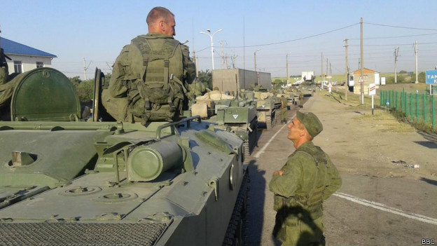 Ранее корреспондент британской газеты Guardian Шон Уокер написал на своей странице в "Твиттере", что на его глазах колонна из примерно 20 БТР и армейских грузовиков с российскими военными номерами приблизилась к российско-украинской границе, а затем и пересекла ее в районе Донецка Ростовской области.