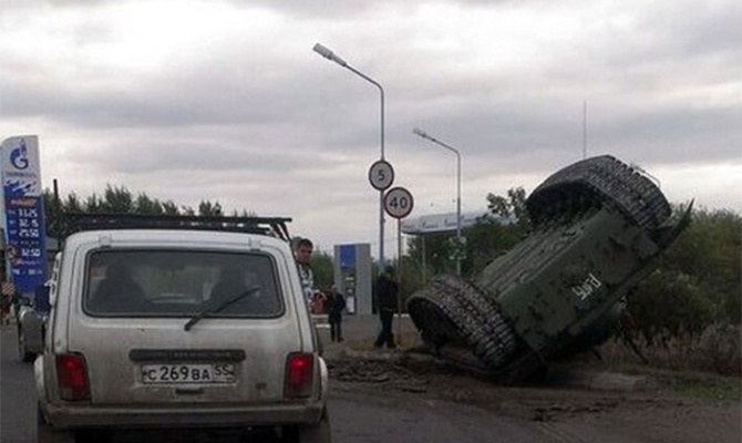 Инцидент с опрокидыванием танка произошел 10 сентября, однако запись с видеорегистратора появилась в Сети только накануне.