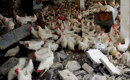 В Луганской области тысячи кур гуляют по разрушенной птицефабрике (ВИДЕО)