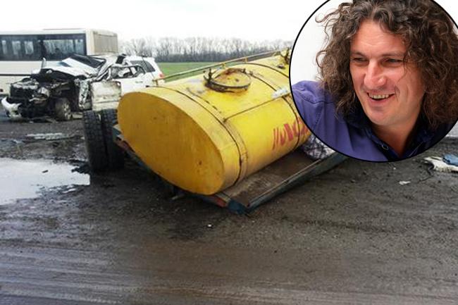 Он возвращался из Кривого Рога, где накануне его группа дала концерт. По словам очевидцев, они видели, как на большой скорости в месте закругления дороги джип музыканта выехал на встречную полосу и врезался в бок цистерны, заметив, что на трассе был гололед, и автомобили пытались разъехаться. По официально обнародованным данным машина певца ехала на скорости 160 км в час, что привело к страшному удару о молоковоз. Фотографии с места удара показывают какой была сила удара.