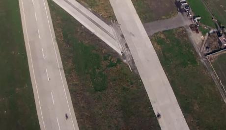 На видео четко видно, что разрушено много зданий вокруг аэропорта и целые жилые массивы в близлежащих населенных пунктах, а все поля плотно укрыты выбоинами от снарядов. Даже странно, как при таком массивном артобстреле этой территории, взлетная полоса осталась практически не поврежденной.
