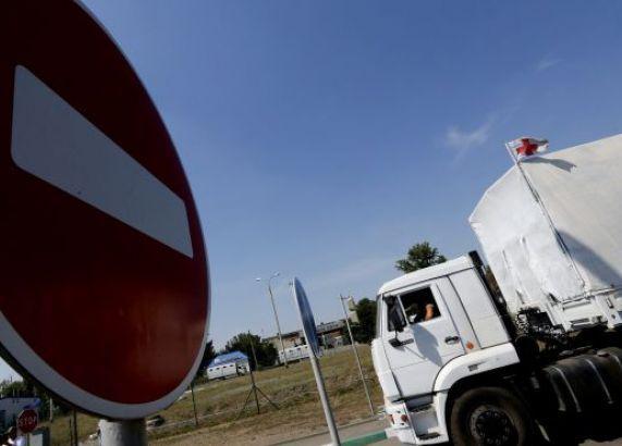 После формирования целой общей колонны, машины отправятся на границу, а затес к конечным точкам в Донецк и Луганск.