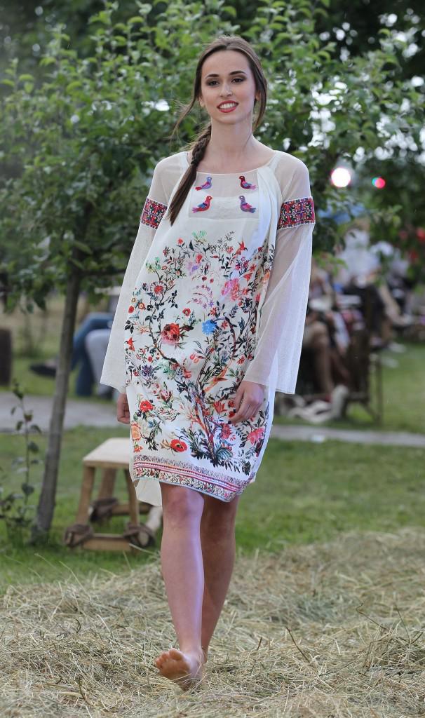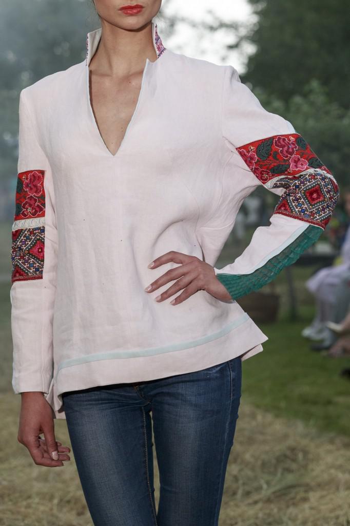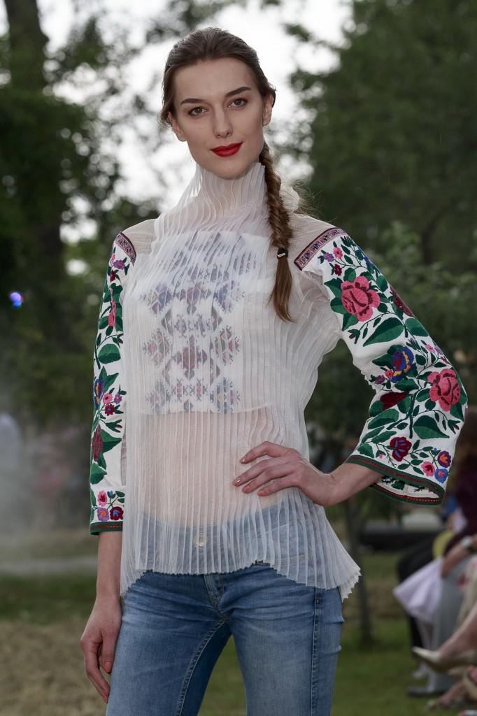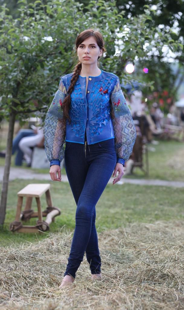 На эксклюзивном показе в рамках Alfa Jazz Fest в Митрополичьих Садах на Святоюрской горе дизайнер представила около сорока современных вышиванок.