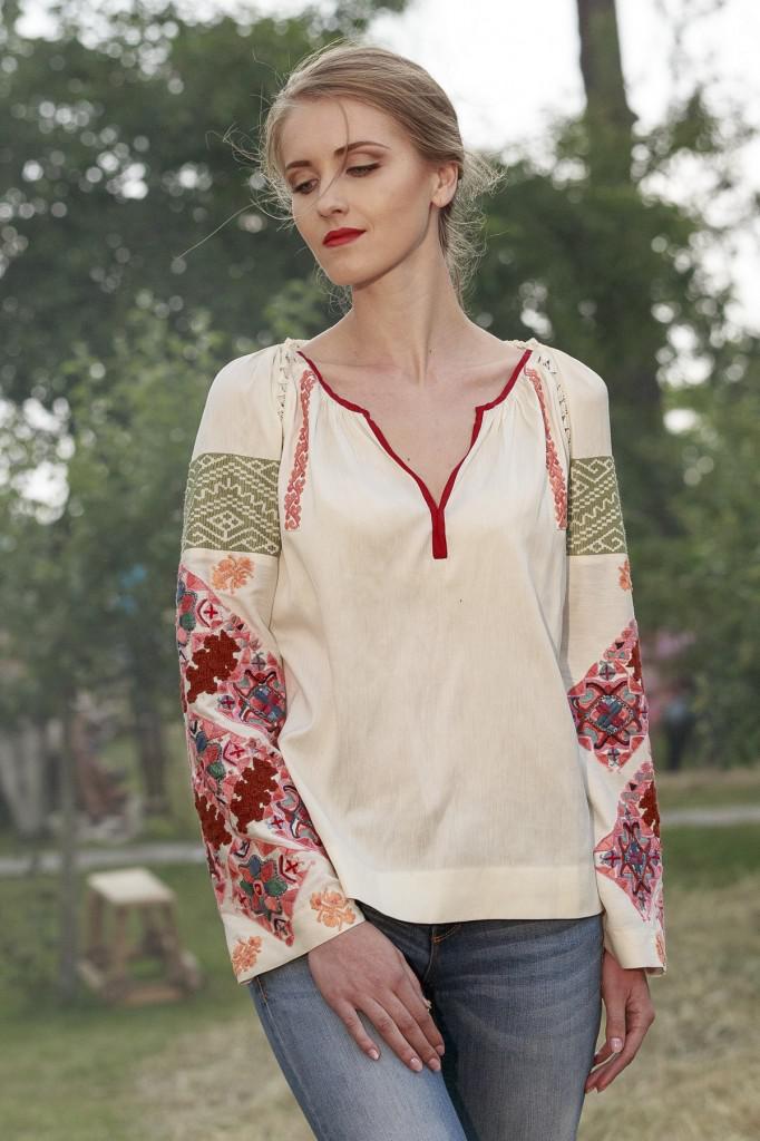 Это сочетание старинной вышивки, образцы которой дизайнер собирает по всей Украине, с новейшими тканями, креативным кроем и современным hand-made.
