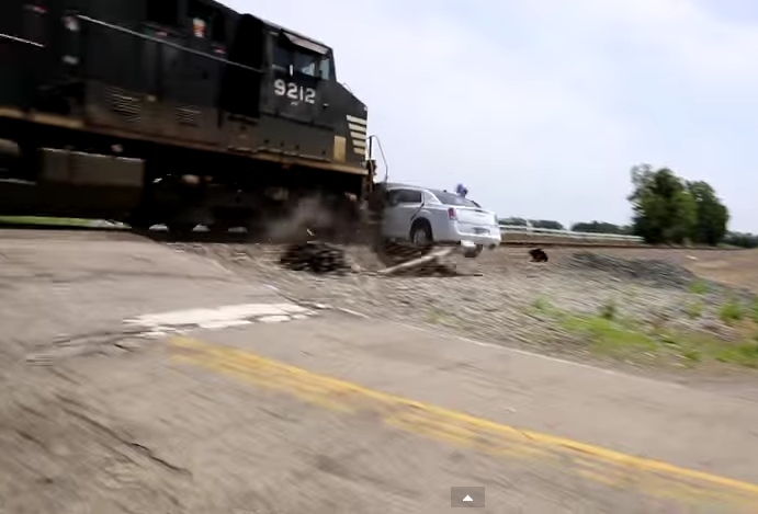 Некоторое время спустя в лимузин врезался грузовой поезд. Машинист увидел автомобиль, но не смог успеть вовремя остановить многотонный поезд.