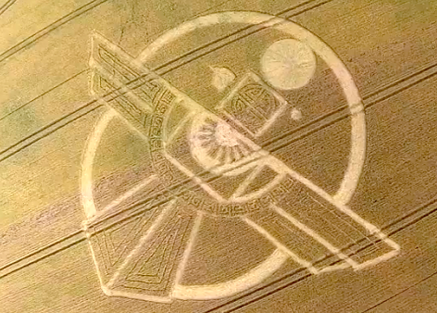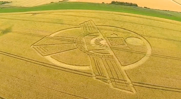 "Рисунок" возник 25 июля 2015 года на поле созревшей пшеницы в графстве Уилтшир (Wiltshire) - там, где подобные картинки появляются чаще всего. На нынешней - изображена огромная стилизованная птица, богато украшенная орнаментом. Кто согнул колосья, образовавшие рисунок, не известно. Местные жители и, главное, фермер, владеющий полем, ничего подозрительного не заметили. То есть, процесс "изготовления" картинки никто не видел - только результат. Так обычно и бывает, а само явление вот уже которое десятилетие остается неразгаданным.