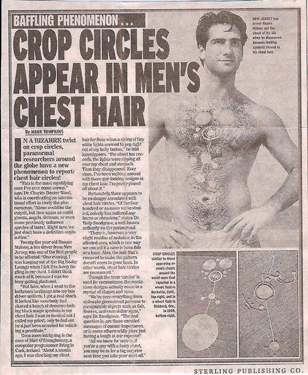Одна из шуток "желтой прессы": газета рассказывает, что пиктограмма возникла на груди мужчины. Ее, якобы, образовали выпавшие волоски