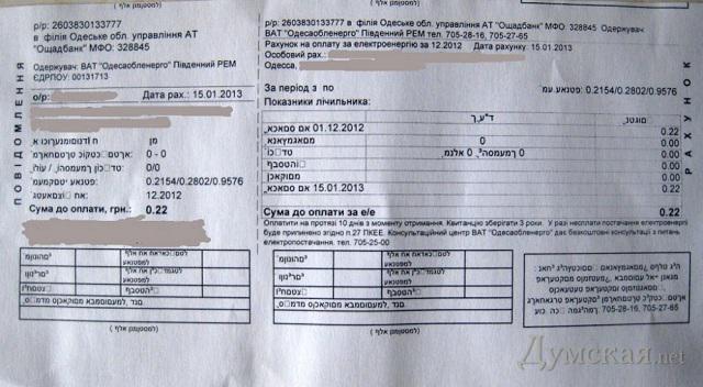 В Одессе на улице Академика Глушко местные жители получили странные платежки от ОАО «Одессаоблэнерго». Странность этих квитанций была в том, что они оформлены на иврите.
