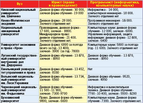 Во сколько обойдется бакалаврат в разных вузах (в гривнах)