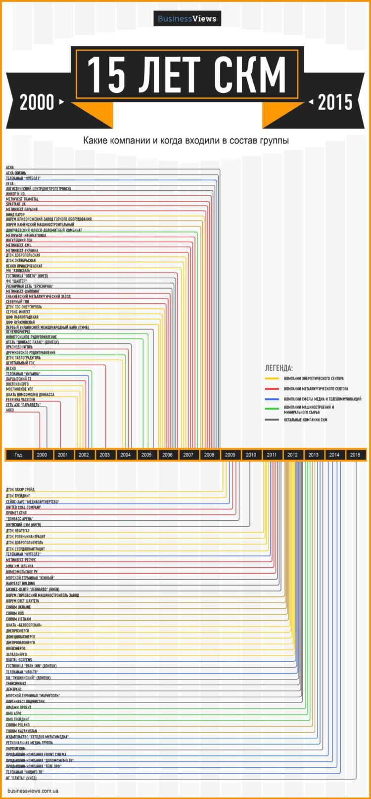 Больше всего в этом таймлайне поражает то, как быстро и часто в «СКМ» входили новые компании.