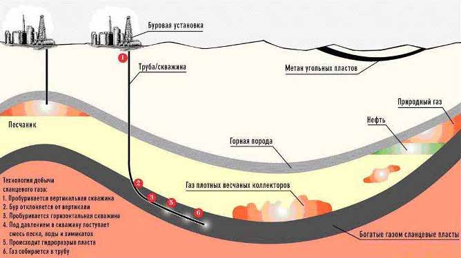 Графическое отображение добычи углеводородов из сланцев при помощи метода гидроразрыва пласта
