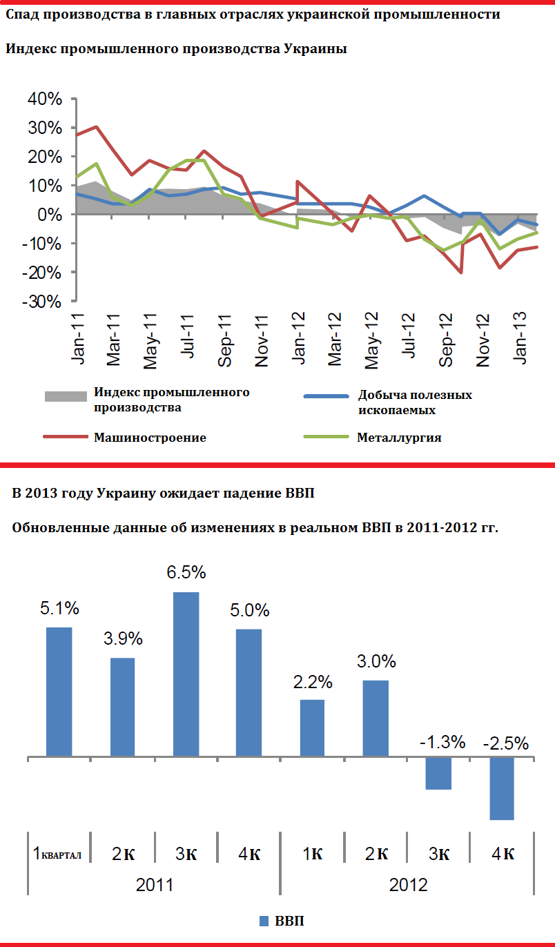 Украинское правительство не в силах сделать ничего, что предотвратило бы сползание экономики в рецессию в первом квартале 2013 года, после того, как в 2012 году был отмечен рост ВВП на уровне 0,2%. Все, что остается делать Киеву, это срочно найти внешнюю экономическую поддержку, если не в России, то у Международного валютного фонда, делегацию которого опять ждут не дождутся в столице.