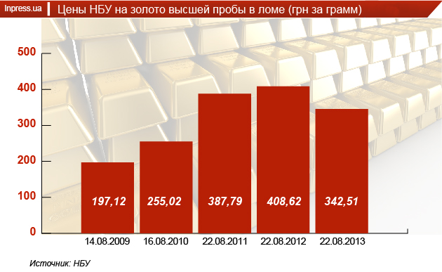 По данным World Gold Counsel, Украина в период с августа 2012 по август 2013 гг. нарастила свой золотой запас на 6,1 тонн до 38,9 тонн (6,4% от всех золотовалютных запасов).
