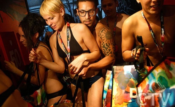 Магазин открылся в 9 утра. Первым 100 клиентам выдали сумки, чтобы сложить в них одежду, прежде чем войти в магазин в нижнем белье и получить обещанные подарки. Следующую сотню осчастливили талонами на дополнительную скидку. Остальных поблагодарили за внимание к марке.