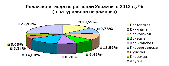 В 2013 г. основные потребители меда натурального находятся в Кировоградской, Полтавской, Черкасской и Винницой областях.