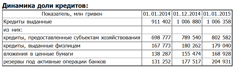 Общий объем предоставленных кредитов по состоянию на 1 января составил 1 006,358 млрд гривен (на 1 декабря он составил 1 006,880 млрд гривен, на 1 ноября он составил - 965,692 млрд гривен, на 1 октября - 982,134 млрд гривен).