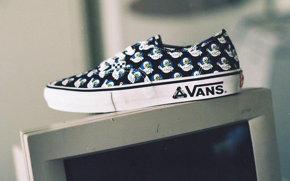 Главным героем коллекции стал «новый сотрудник» Palace — утенок Джереми. Его мультяшное изображение напечатали на обуви вместо привычных черно-белых клеток Vans.