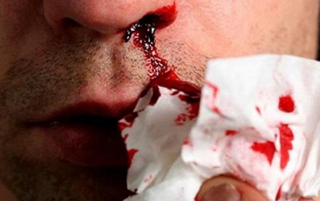 Сядь, выпрями спину и наклонись вперед. В ноздрю вставь тампон или ватный диск, смоченный в 3%-м растворе перекиси водорода. Также советуем приложить что-то холодное к переносице.