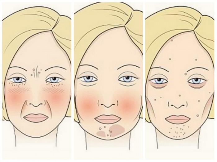 Но вы можете определить свою проблему, читая по лицу, и принять меры, чтобы устранить ее или избежать, насколько это возможно, продуктов и напитков, вызывающих косметические проблемы и способствующих преждевременному старению.