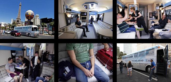 Поэтому в Лас-Вегасе появилось уникальное мобильное медицинское обслуживание, которое помогает людям справиться с последствиями веселой ночи, – первый в мире антипохмельный автобус «Hangover Heaven» («Райское похмелье»).