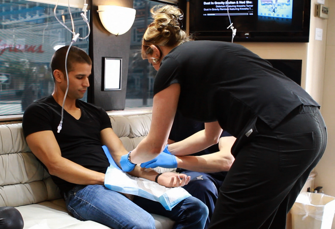 Революционный сервис предлагает изможденным клиентам набор различных витаминов, препаратов и аминокислот, обещая избавить их от симптомов похмелья в рекордно короткие сроки.