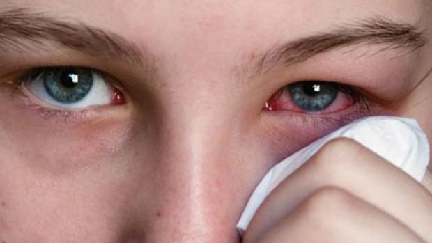 Аденовирус также может вызывать кератоконъюнктивит, который проявляется слезотечением, гиперемией слизистых оболочек, возникновением плёнки, светобоязнью и ухудшением зрения.