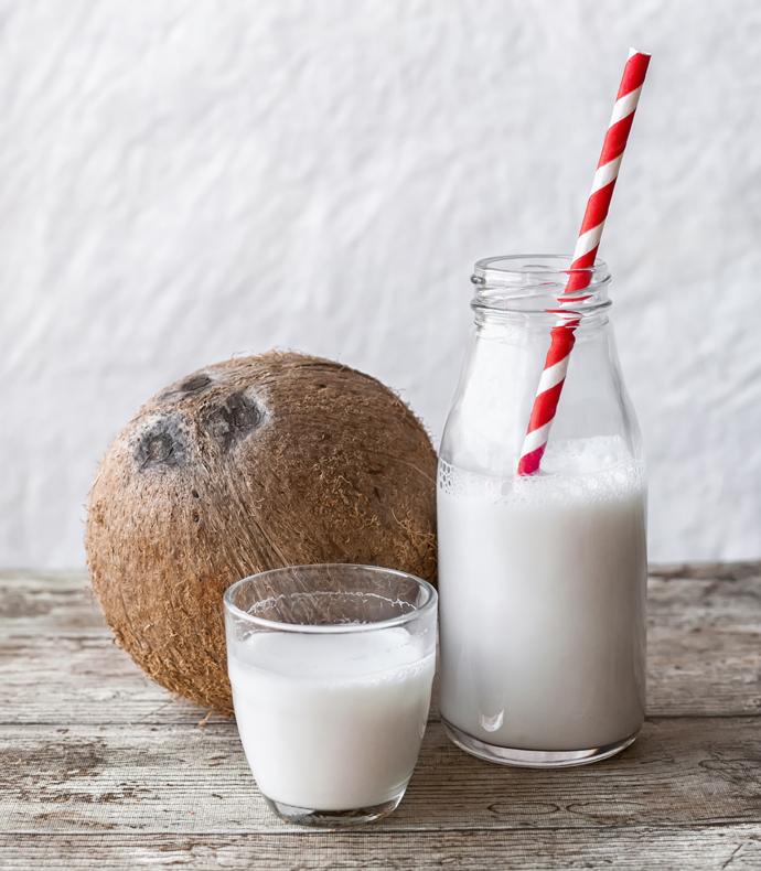 Белая сладкая жидкость, которую получают из мякоти созревшего кокоса. Для восточной кухни это незаменимый ингредиент, ведь самые популярные виды супов и соусов готовят как раз из кокосового молока. Впрочем, следует отличать его от популярной нынче «кокосовой воды» (или кокосового сока) — натуральной жидкости, которую как раз добывают из самого кокосового ореха. В отличие от нее, кокосовое молоко получают искусственным путем, смешивая мякоть кокоса и воду. В чистом виде этот продукт не используют, но в составе коктейлей и блюд он присутствует очень часто. Впрочем, не нужно сильно усердствовать, думая, что молоко растительного происхождения абсолютно безвредно. Из-за высокого содержания жиров кокосовое молоко рекомендуют употреблять именно как ингредиент, но не как самостоятельный напиток.