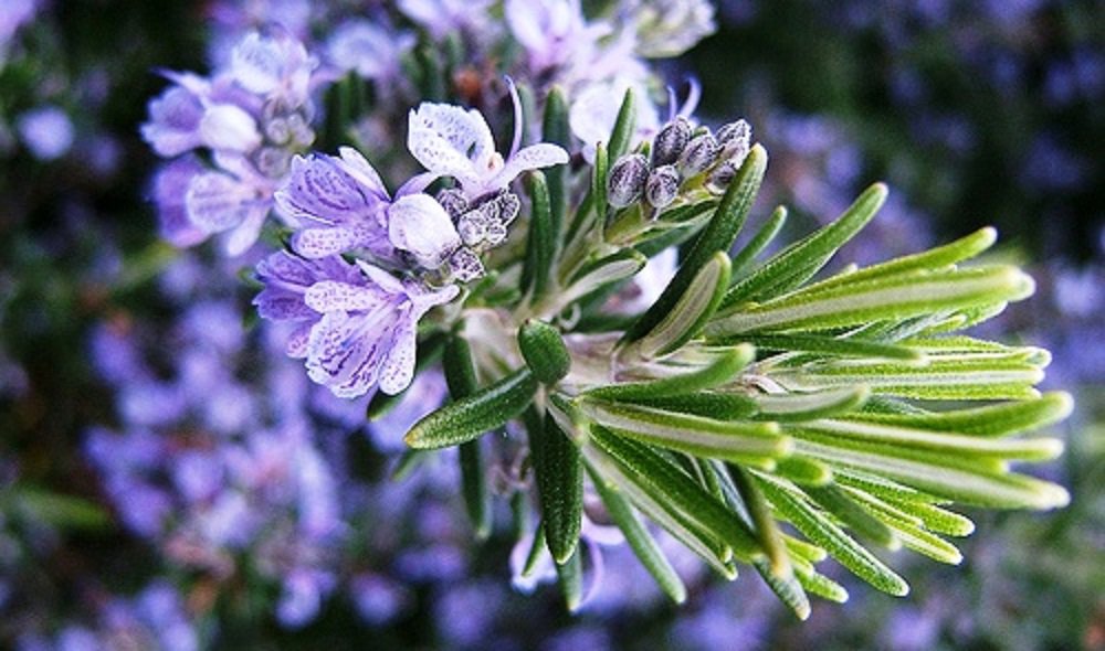 Розмарин лекарственный. Кустарник высотой до 1 м, прямой, сильно разветвленный. Вечнозеленые листья продолговато-линейные, почти сидячие, супротивные, кожистые цельные, с завернутыми вниз краями, сверху блестящие, снизу густовойлочные. Голубовато-фиолетовые цветки собраны по 5—10 в небольшие кистевые соцветия, расположенные на верхушках побегов. Цветет все лето.